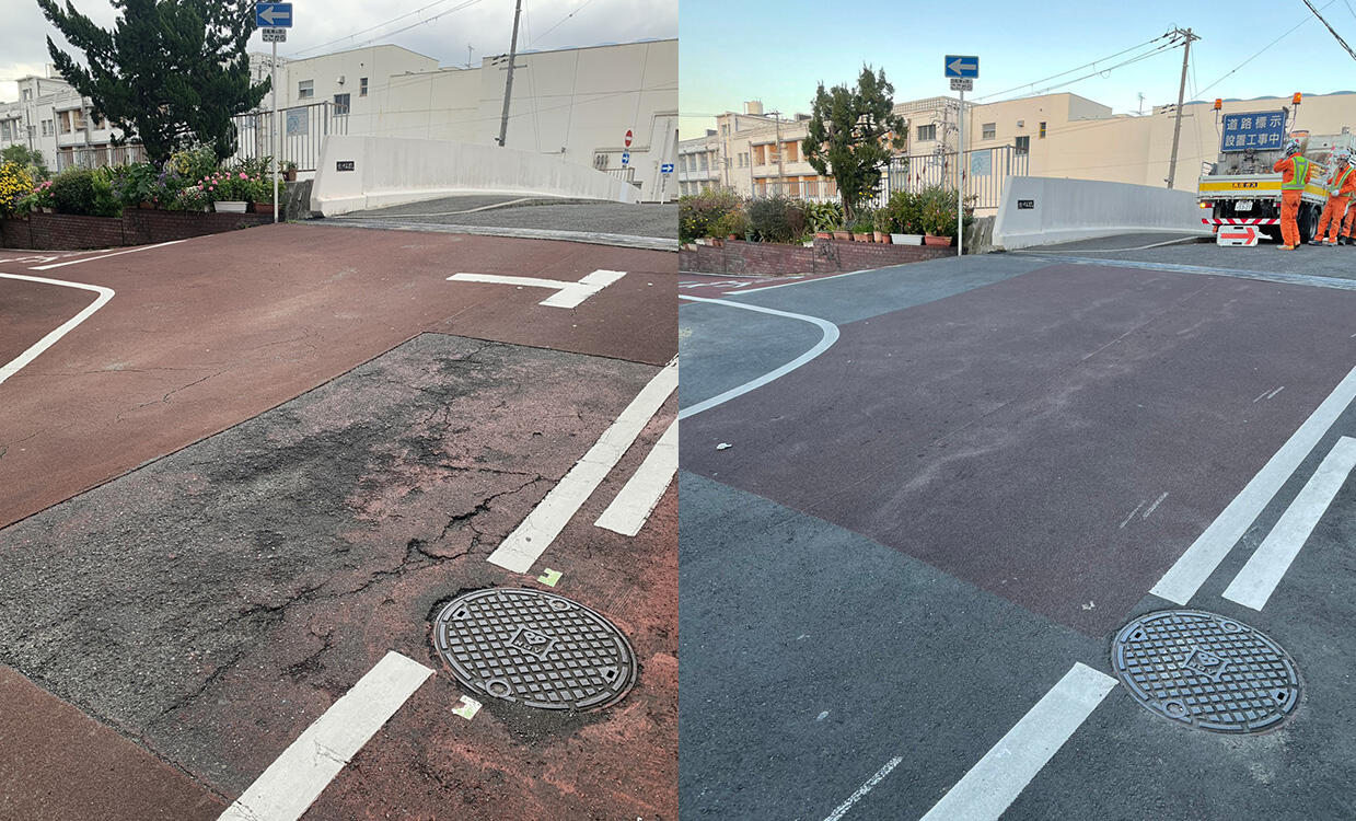 中川東 翆岩(すいがん)橋のカラー舗装と道路の補修
