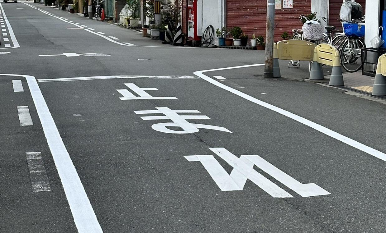 田島 サンディ田島店前の「止まれ」標識の塗り直し
